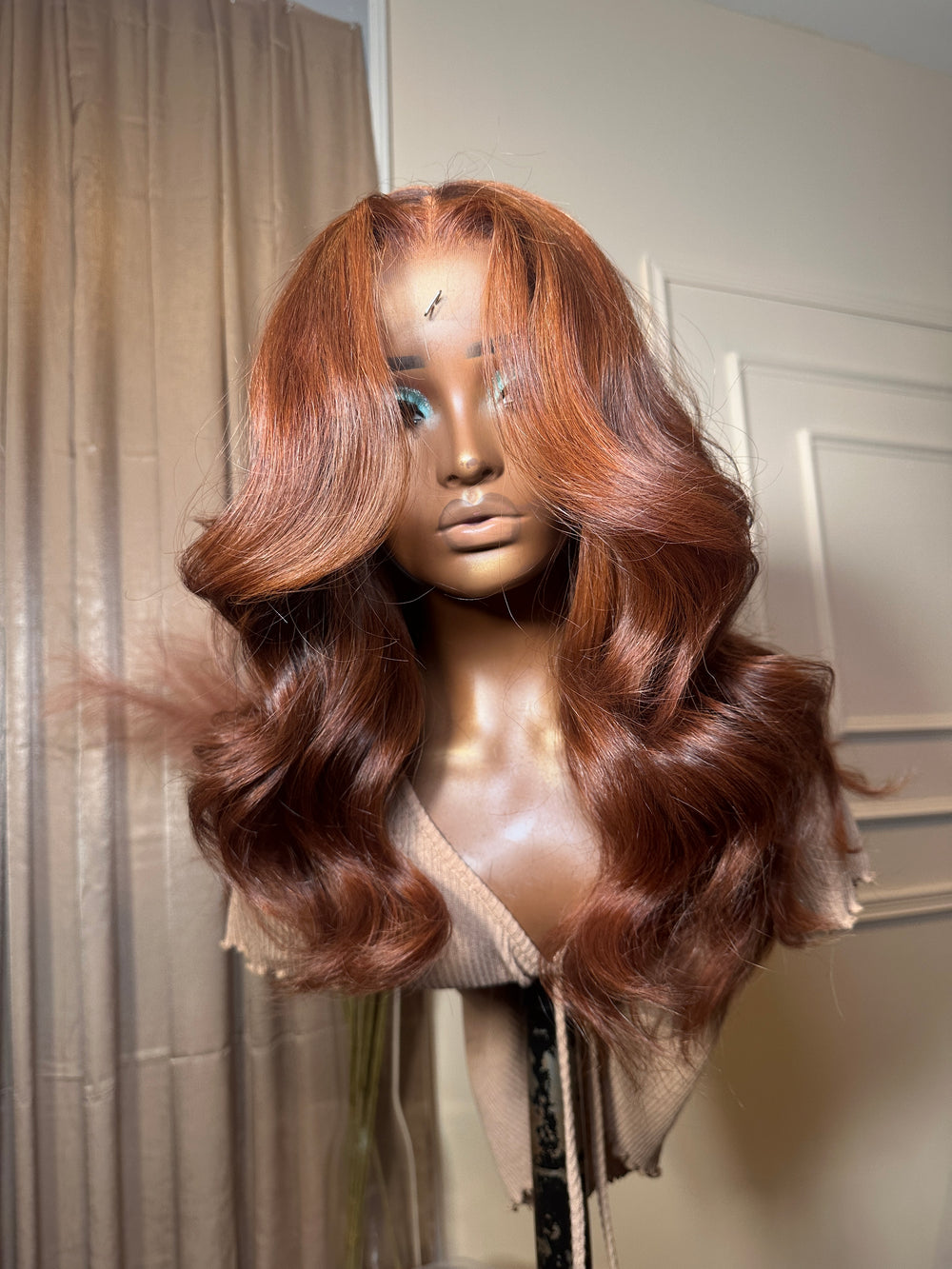 Autumn is an auburn colored raw unit created with 16in bundles and a HD closure. She is layered, plucked, and constructed in an adjustable cap with an elastic band for self installation.