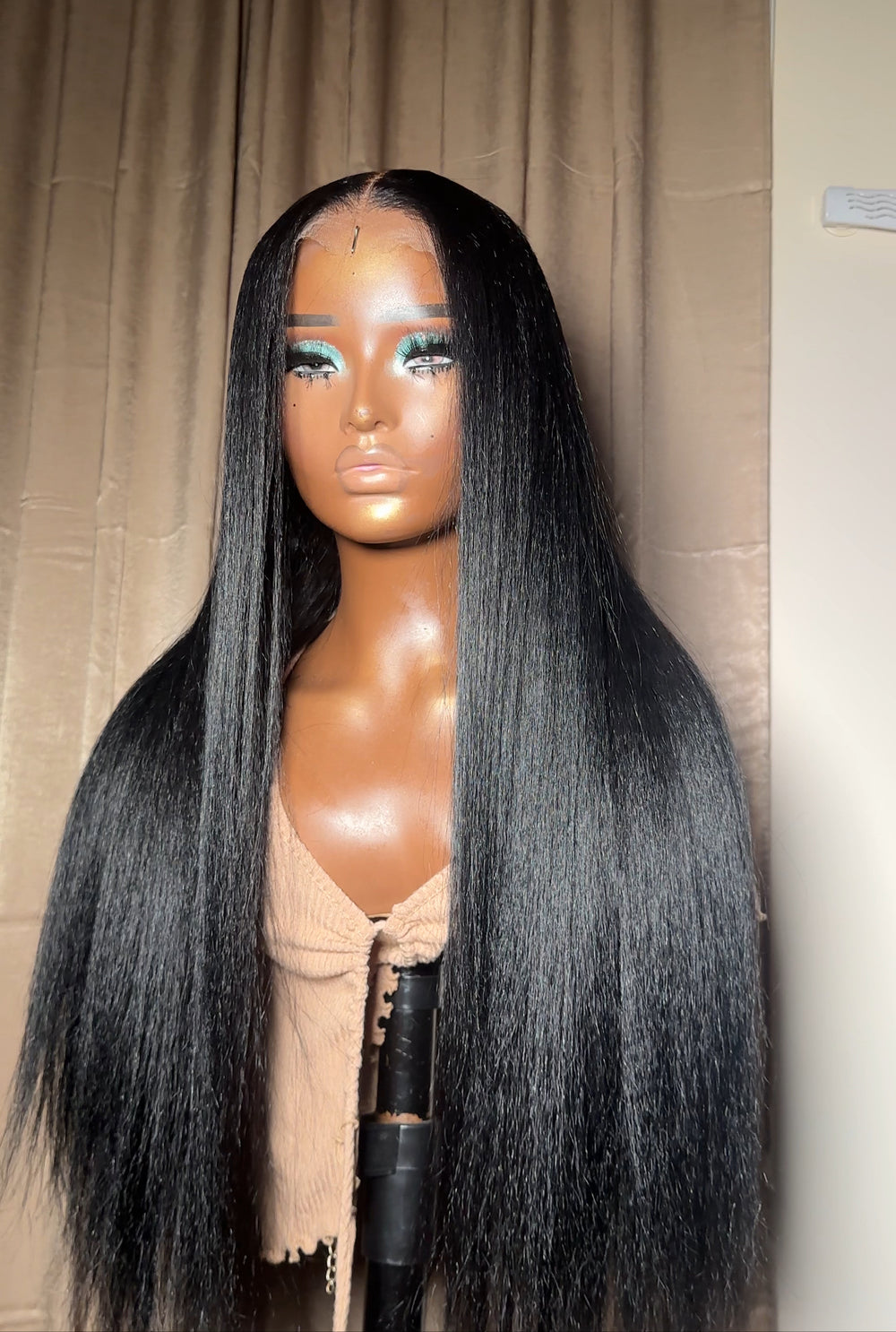 Out Kinky Straight Virgin Hair unit is a Newbie to the collection. She features a 5x5 Hd closure and 22in bundles. She is Really full and perfect for the woman for loves natural texture and Fullness.